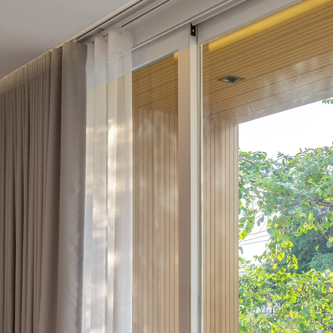 Rèm vải tự động hoạt động như một “lá chắn ánh sáng” thông minh, giúp căn phòng luôn êm dịu và cân bằng.